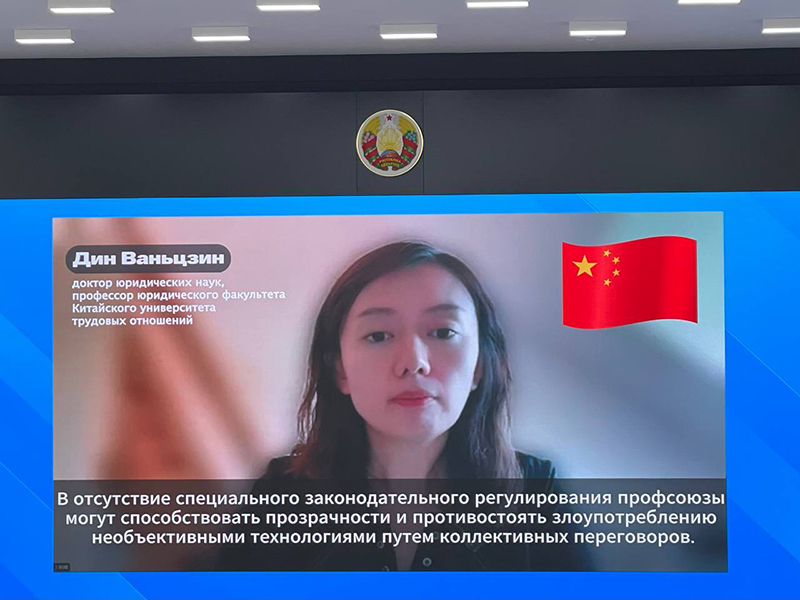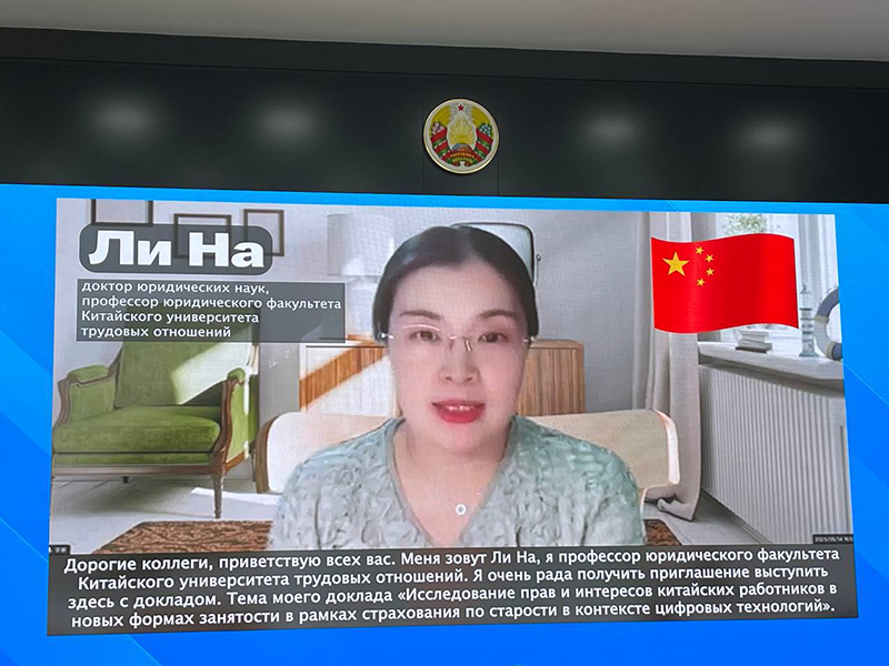 The symposium focused on the theory and practice of social partnership, and had in-depth discussions on the core topics such as the practice of freedom of association under the international legal framework, Belarus' experience of forming social partnership, and innovative mechanisms to adjust labor relations. Seven experts and scholars including Professor Mikhail Vladimirovich Miasnikovich, academician of Belarus' National Academy of Sciences, Professor Grigory Alexievich Vasilievich, Andrei Vladimirovich Savinen, vice chairman of The Liberal Democratic Party of Belarus and an international relations expert, and Li Na and Ding Wanjing, teachers from the Law School of CULR, made thematic presentations on the socio-economic impact and tripartite coordination mechanism of social partnership in their respective countries.