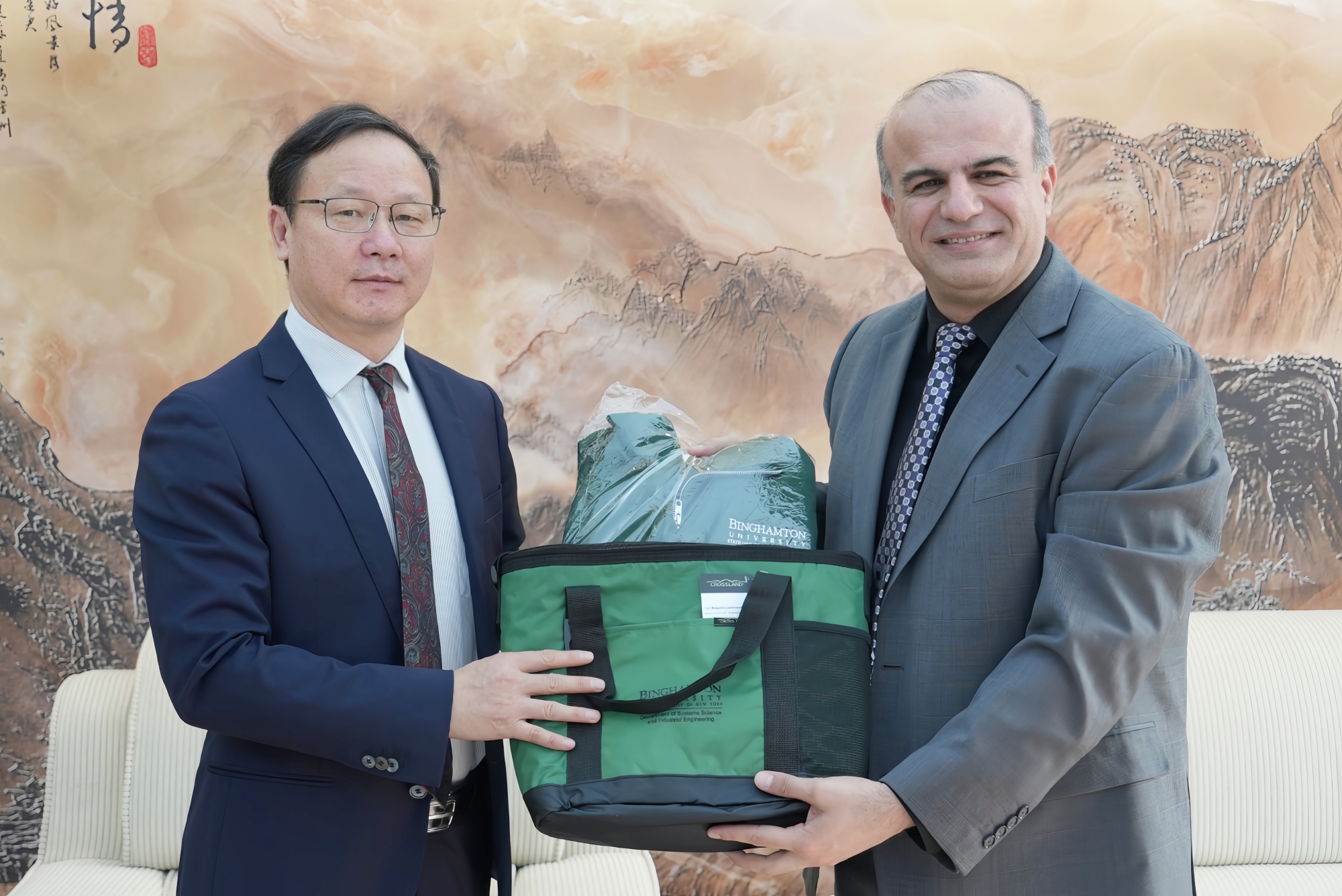 Professor Khasawneh expressed gratitude for the warm reception and highly appreciated CULR's achievements in high-quality talent cultivation. He said that the cooperation between the two universities started from the joint training program of 3.5+1.5 bachelor and master degrees on safety engineering, which has gained fruitful results. Nowadays, international exchange is of great significance, so that SUNY-Binghamton sets international exchange as its 6th development strategy. He expected that the intercollegiate cooperation with CULR will create more opportunities for exchange of teachers and students, and jointly establish a new collaboration platform on a higher level.