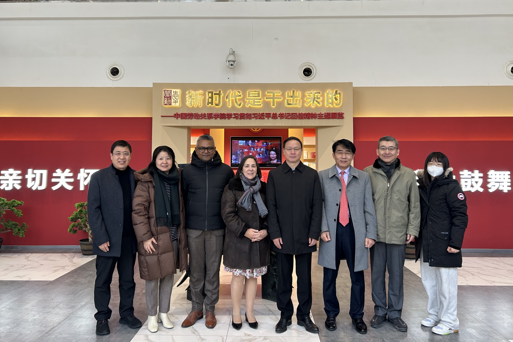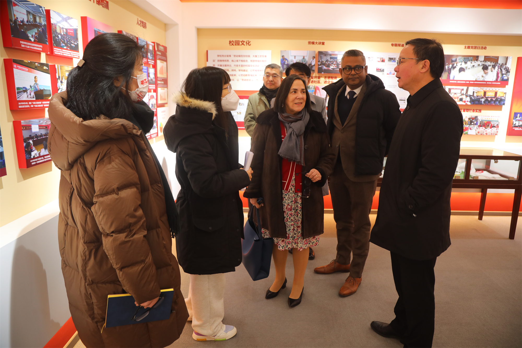 Subsequently, Vice President Wu Wanxiong accompanied the delegation to visit the theme exhibition "The New Era is Achieved through Hard Work" - our university's exhibition on studying and implementing the spirit of General Secretary Xi Jinping's reply letter and the university history museum. At the reply letter exhibition, Director Maria Helena Andre praised our university's in-depth research and interpretation of the spirit of General Secretary Xi Jinping's reply letters, insistence on organizing undergraduate education for model workers, and solid implementation of labor education. At the university history museum, Director Maria Helena Andre gained a comprehensive understanding of our university's historical evolution, mission and vision, educational characteristics, faculty team, enrollment and employment, teaching and research, international exchanges, campus culture, etc. She inquired in detail about our university's achievements in external exchanges, hosting international conferences, student employment, and training of trade union cadres, highly affirming our outstanding achievements in promoting characteristic advantages, expanding diversified international exchanges, strengthening the training of trade union cadres, and serving the ACFTU and trade union work.