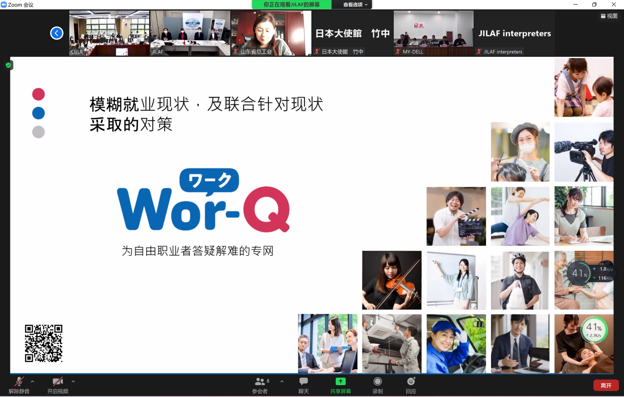 At the seminar, Nishino Yukari, Director of Wor-Q support center of the Japan Trade Union Confederation (JTUC-RENGO) made a presentation titled Present Status of "Fuzzy Employment" and Joint Countermeasures in Japan and gave a systematic introduction to Wor-Q, a website dedicated for providing assistance and relief to freelancers. She explained that "fuzzy employment" in Japan mainly refers to the individuals providing services and receiving remunerations in forms of outsourcing, contracting, part-time jobs, side jobs and freelancers, which is a working pattern between being employed and self-employed. Through the data gained from the "Industry Survey of Freelancers 2021" and the inquiry information released by freelancers on the Wor-Q website, she analyzed the existing problems of "fuzzy employment" e.g. dramatic increase of employed people, rising disputes of freelancers due to lack of protection of traditional labor laws and regulations, and prominent vulnerability of "fuzzy employment" caused by the rampant pandemic. She noted that the "cyber members" and Wor-Q website appeared for the people of "fuzzy employment" to address these challenges. By means of sharing freelancers' opinions, providing legal consultancy services and labor consultation cases, communicating with other freelancers, and establishing the Wor-Q community and Wor-Q mutual insurance for freelancers, etc., the website protects the rights and interests of "fuzzy employees", provides basic insurance coverage, enhances the communication of industrial insiders and sets up an organization based on legal protection and online connectivity.