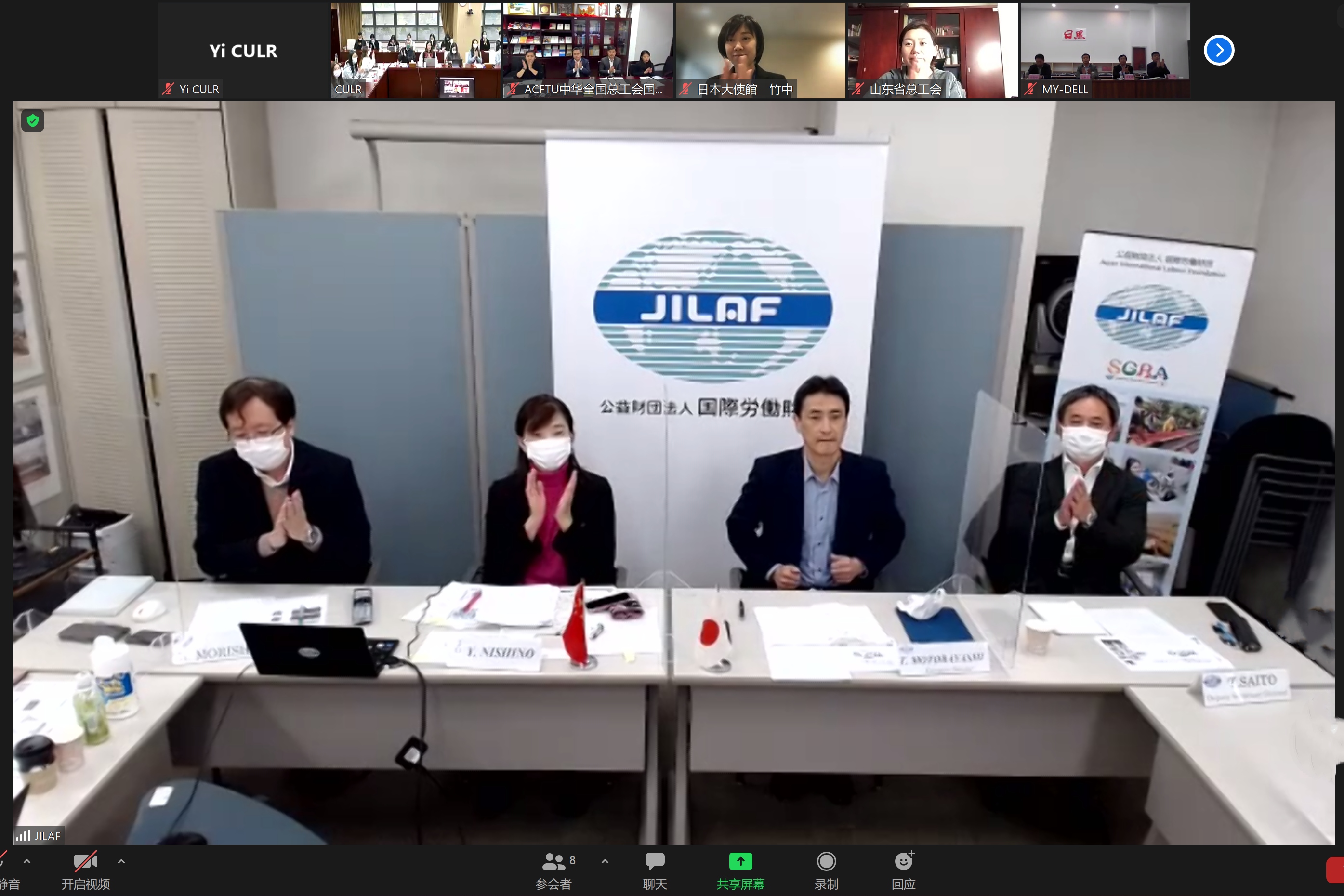 Deputy Director Zheng Jiaheng affirmed the productive symposium in the concluding remark. He said that the world is undergoing profound and sophisticated changes. After the outbreak of the COVID-19 pandemic, new changes and conflicts have taken place between workers and the working environment, resulting in a number of new industries, new business forms and new models, and the world labor community including China and Japan is now facing new situations and new challenges. The exchange of new situations and issues of common concern between the labor circles of the two countries will yield a positive effect on the workers' and people's well-being in the two countries. Executive Director Motobayashi Toshihiro commented that the Japanese side benefits a lot from China's advanced practice and experience of attracting the workers of new business forms to trade unions, while Japan's experience of "fuzzy employment" mutual insurance is also enlightening for China. He hoped that the two countries would continue to work together on protecting the workers' rights and interests and promoting further communication and cooperation.