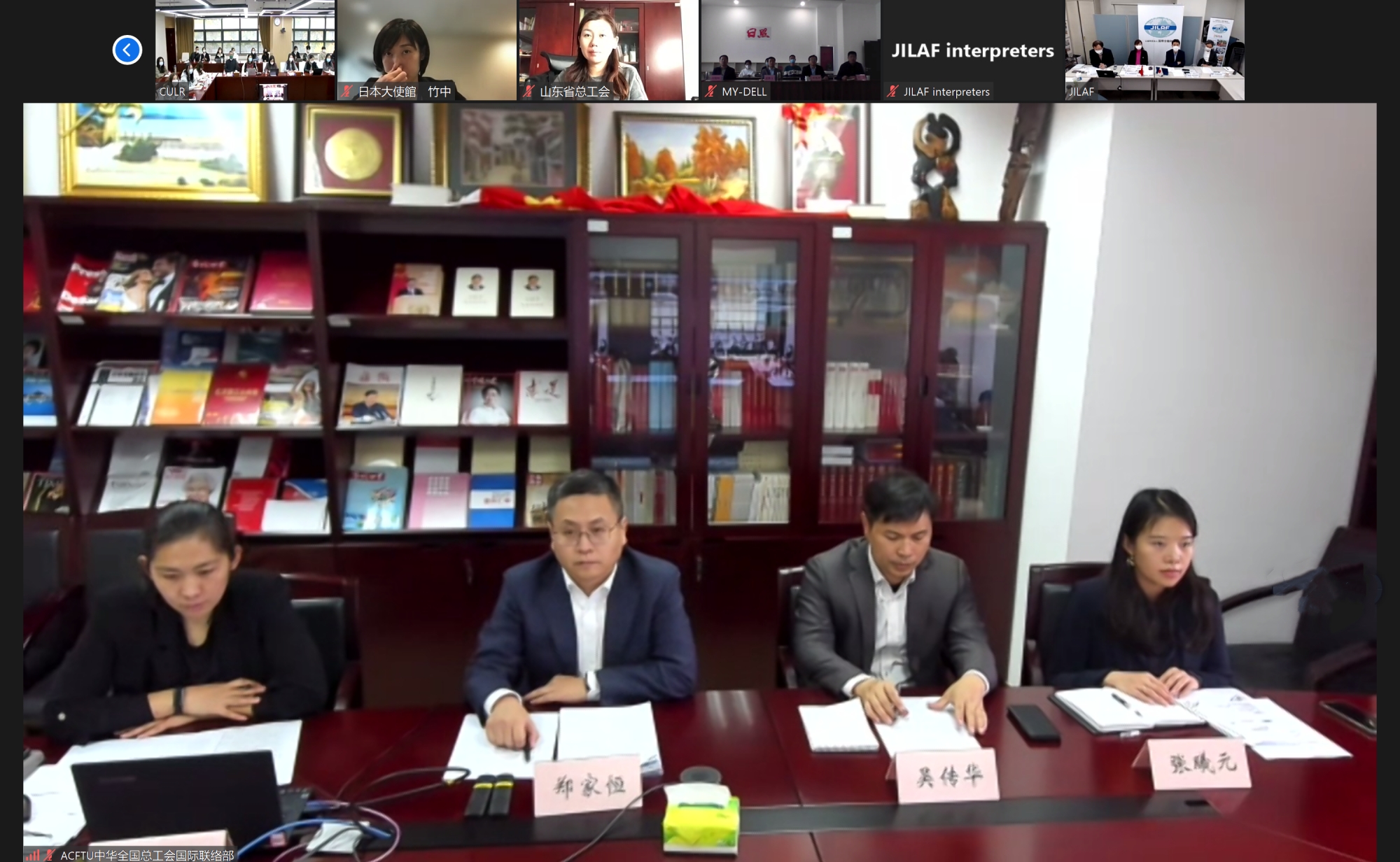 On October 27, the "Building Harmonious Labor Relations and Present Status of Employment on Platforms in China and Japan" Seminar was held in Conference Room 509 of Zhiyuan Building, which was co-organized by the All-China Federation of Trade Unions (ACFTU) and Japan International Labor Foundation (JILAF), and co-organized by the CULR. The seminar was attended online by Zheng Jiaheng, Deputy Director of the International Department of the ACFTU, and Motobayashi Toshihiro, Executive Director of the JILAF. It also had more than 50 attendants in both online and offline manner, including the officials from the ACFTU, the JILAF, Shandong Provincial Federation of Trade Unions, Rizhao Municipal Federation of Trade Unions, teachers and students from the School of Labor Relations and Human Resources, and the staff from the International Office of Cooperation and Exchange of our university.