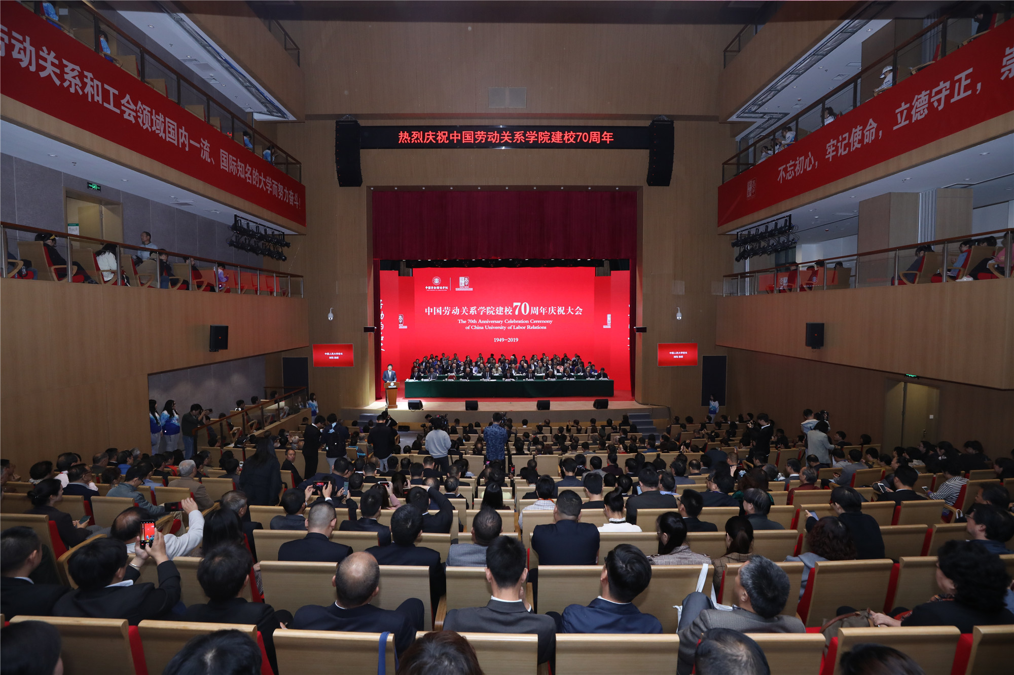 After seventy years of unchanging aspiration and upholding virtues, labor and innovation, at 9:30 a.m. on October 13, accompanied by the solemn national anthem, our school celebrated its 70th anniversary grandly in the auditorium of Zhiyuan Building, Beijing campus. We were honored with instructions by Wang Dongming, vice chairman of the Standing Committee of the National People's Congress and chairman of the All-China Federation of Trade Unions, and the attendance of Li Yufu, secretary of the party group, vice chairman, and first secretary of the secretariat. Leaders of the All-China Federation of Trade Unions, leaders of education authorities, representatives of more than 40 domestic and foreign universities and cooperative units, responsible comrades of all departments of the ACFTU, all industrial unions in the association, directly affiliated units in Beijing, 19 provincial (regional) city labor unions and provincial representatives of trade union colleges, all school leaders, faculty and staff representatives, student representatives and alumni representatives attended the event, aggregating some 1,000 participants.