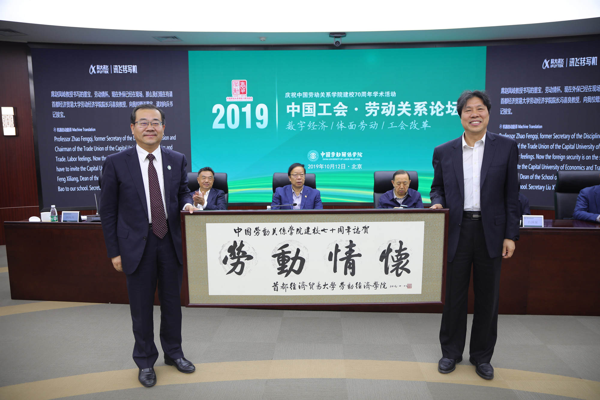 At the opening ceremony, Professor FENG Xiliang, on behalf of the Capital University of Economics and Business, presented to our school a calligraphy with the words “Devotion to Labor” to celebrate the 70th anniversary of CULR.
