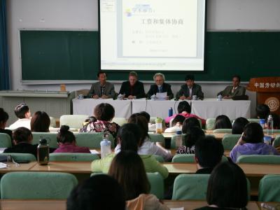 Professor Däubler provided a detailed introduction to the political economy, labor relations, union organization, employee wages, and collective bargaining situation in Germany. The lecture painted a vivid picture of the labor-management situation in Germany for the teachers and students. Professor Däubler also answered questions from the teachers and students present.