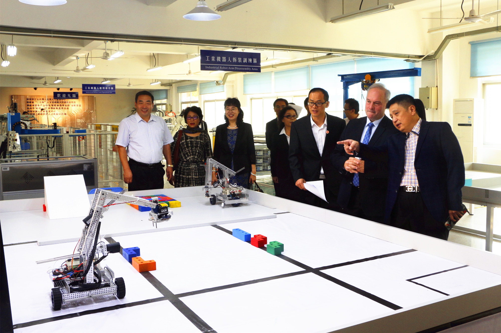 During the exchange, Vice President Liu Lihong and her entourage visited the university training facilities like teaching building, dormitory, student service center and robot training room of Quanzhou College of Technology, the public training base of financial media technology, the production and training base of Anta Group, practical training base of food engineering department, intelligent production training base for footwear design, finance and accounting training center and arts center.