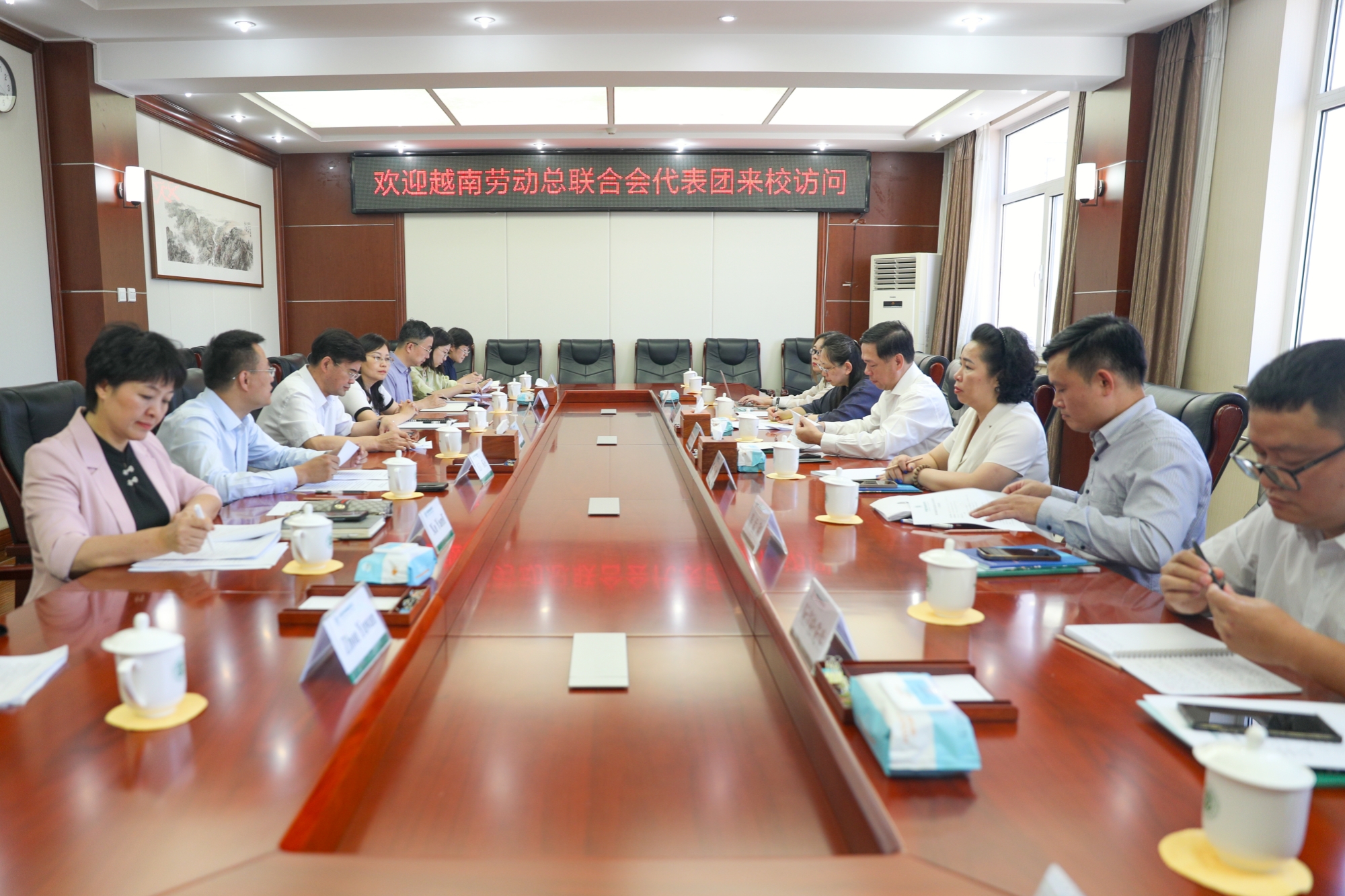 On July 30, at the invitation of the All-China Federation of Trade Unions (ACFTU), a delegation of six people led by Tong Van Bang, a member of the Presidium and Director of the Organization Department of the Vietnam General Confederation of Labour (hereinafter referred to as VGCL), conducted an exchange visit to China University of Labor Relations (CULR). Guo Xiaoshi, Deputy Director of the International Liaison Department of the ACFTU, joined in receiving the delegation. Vice President Li Ke, also a member of the Standing Committee of the CPC CULR Committee, received the VGCL delegation. Leaders and faculty representatives from the School of trade unions, Training School for Trade Union Cadres, Scientific Research Department (Institute of Labor Relations and Trade Unions), and Office of International Exchange and Cooperation participated in the exchange.