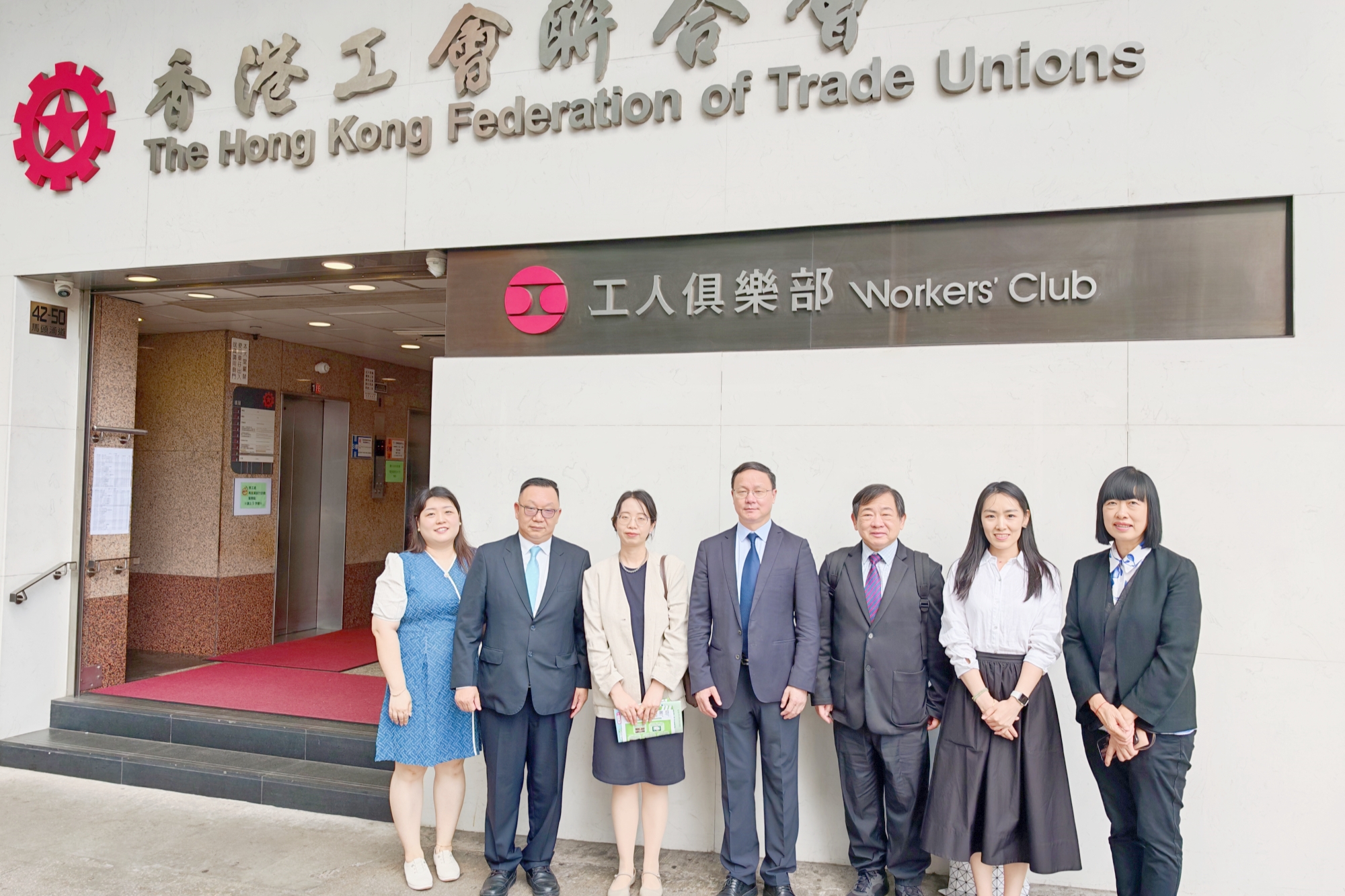 On May 17, CULR vice president WU Wanxiong was invited to visit the Hong Kong Federation of Trade Unions and the Hong Kong Construction Industry Employees General Union. His delegation included relevant persons in charge of the School of Model Workers (National Academy of Craftsmen, Academy of Continuing Education).