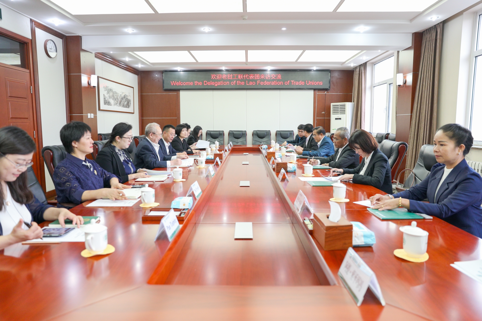 On September 10, at the invitation of the All-China Federation of Trade Unions (ACFTU), a delegation of six people from the Lao Federation of Trade Unions (LFTU), led by Leth Xayaphone, Member of the Central Committee of the Lao People's Revolutionary Party and President of the LFTU, conducted an exchange visit to China University of Labor Relations (CULR). The delegation was accompanied by representatives from the International Liaison Department of the ACFTU. CULR President Fu Deyin and Vice President Li Ke received the delegation. Dai Xiaoxiao, member of the Standing Committee of the CPC CULR Committee and Secretary of the General Party Branch of the Training School for Trade Union Cadres, together with leaders from the Department of Labor Unions, the Human Resources Office, the Office of International Exchange and Cooperation, and faculty members, joined the exchange activities.