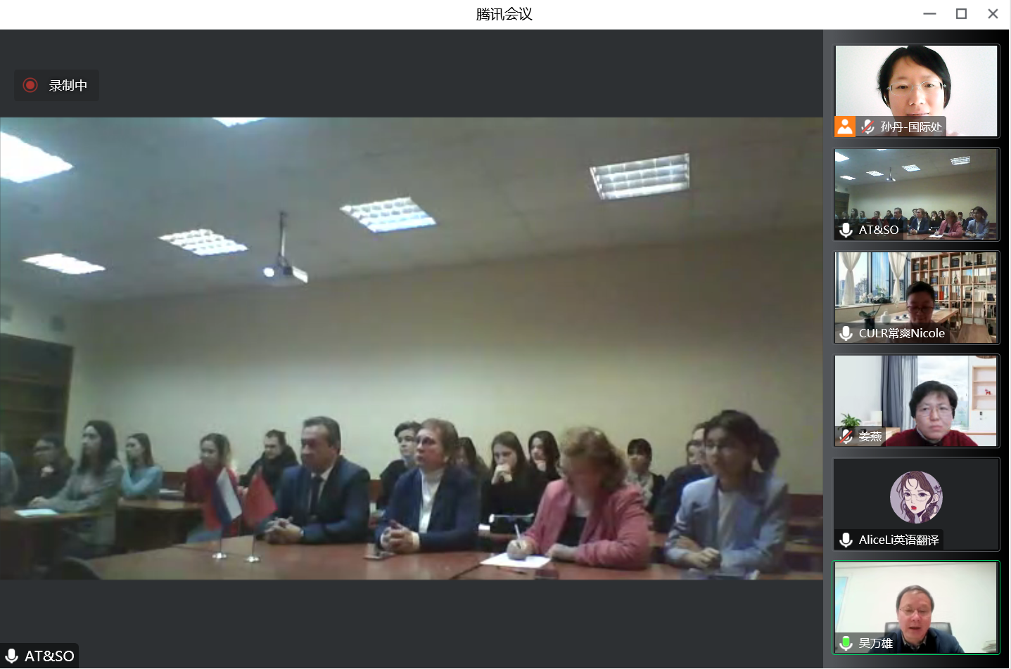 On December 16, the closing ceremony of the short-term Chinese course for Russian zero-base students was held online, which was co-organized by the the CULR and the Academy of Labor and Social Relations (ATISO). Wu Wanxiong, Vice President of the the CULR, and Professor Zhukovsky Vladimir, Vice President of the ATISO were invited to deliver speeches at the closing ceremony. The ceremony was also attended by the representatives of teachers and students of the ATISO and the representatives of teachers and workers of the School of Culture and Communication and the International Office of Cooperation and Exchange of the the CULR.