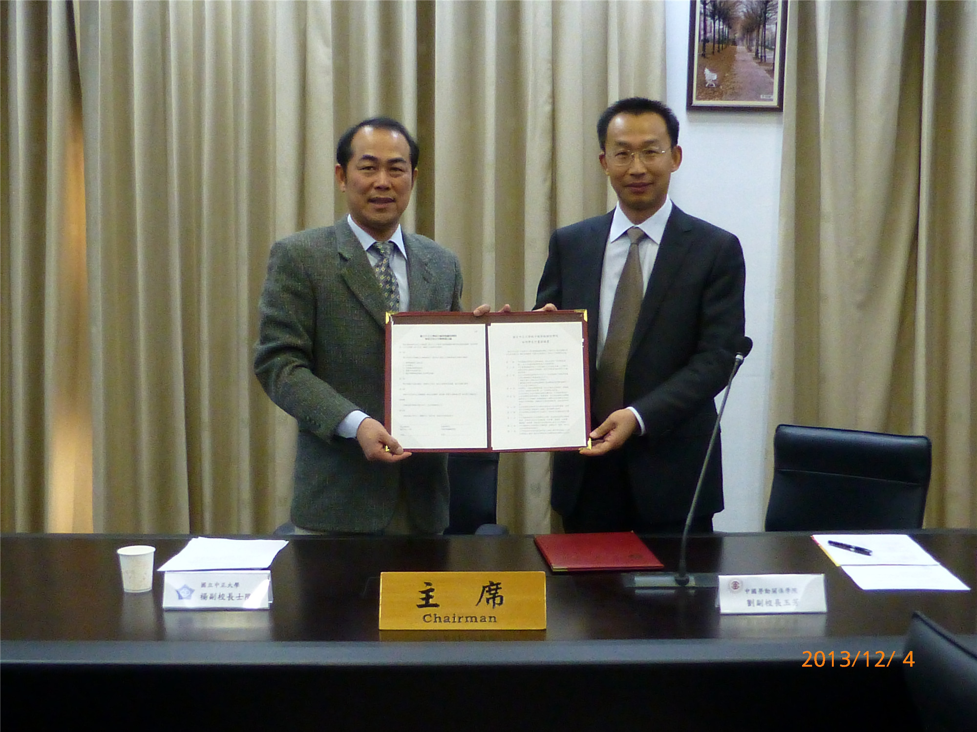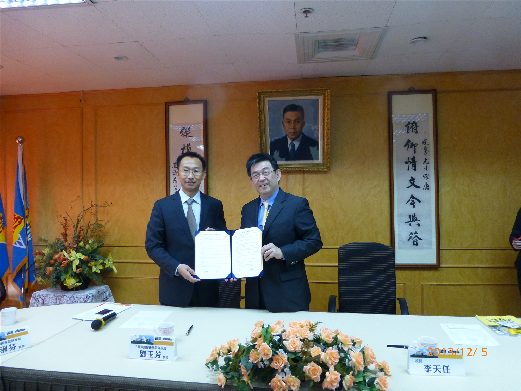 This is the first official exchange visit of the CULR to universities in China’s Taiwan Region and the signing of intercollegiate cooperation agreements. Beginning in 2014, the CULR will officially launch student exchange study programs and teacher exchange visit programs with friendly colleges and universities in China’s Taiwan Region. The delegation that accompanied Vice President Liu Yufang to China’s Taiwan Region included Wu Wanxiong, Director of the Foreign Affairs Office; Wang Shufen, Director of Academic Affairs; Meng Yanhua, Director of the School of Safety Engineering; and Yan Xiaofei, Director of the School of Economic Management.