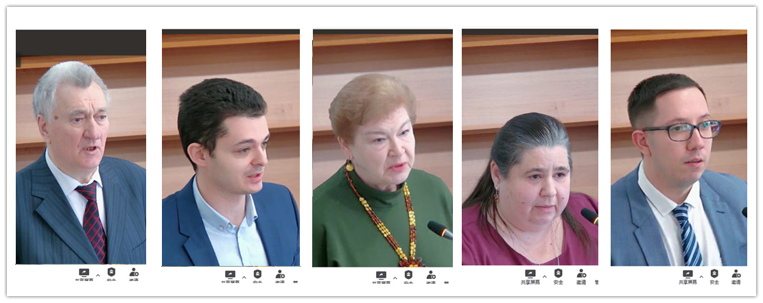 The first session of presentations was moderated by Professor Grishina Tatiana, Director of the International Exchange Center and Continuing Education School of the ATISO. Professor Vyacheslav Goncharov, Director of the Department of Trade Union Movement of the ATISO made a presentation titled The History of Russian Soviet Trade Union Movement and its Influence on China. He said that Russia and China have plenty of similarities in the history of the trade union movement, and the present structural changes and issues of trade unions, so closer connectivity between the two sides will contribute to the unity rooted in the history of trade unions of the two countries. Zhong Xuesheng, Assistant Dean of the School of Labor Union and the School of Trade Union Cadres Training and the Director of the Teaching and Research Division of Chinese Labor Movement History of the CULR made a presentation titled The Centenary Journey, Achievements and Basic Experience of Chinese Labor Movement. Based on the great achievements of the Chinese labor movement in different periods, he fully recognized the basic experience of the development path of socialist trade unions with Chinese characteristics, and noted that the trade union work should always keep pace with the times through persistent reform and innovation.