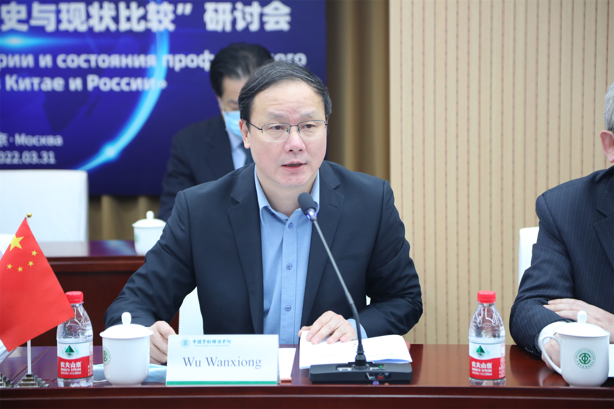 On the afternoon of March 31, the Seminar on "Comparison of History and Status Quo of Trade Union Movement between China and Russia" co-organized by the International Office of Cooperation and Exchange, School of Marxism, School of Labor Union, and School of Trade Union Cadres Training was held in Conference Room 509 in Zhiyuan Building, and online. The seminar invited Ms. Nina Kuzmina, President of the Russian Academy of Labor and Social Relations (the ATISO) and the representatives of teachers and students from the ATISO. Professor Fu Deyin, President of the CULR delivered a welcoming remark at the seminar. The seminar was moderated by Vice President Wu Wanxiong and attended by more than 40 representatives including the teachers from the CULR's School of Marxism, School of Labor Union, Training School for Trade Union Cadres and research think tanks, the students from the School of Social Work and the model worker students from the School of Continuing Education.