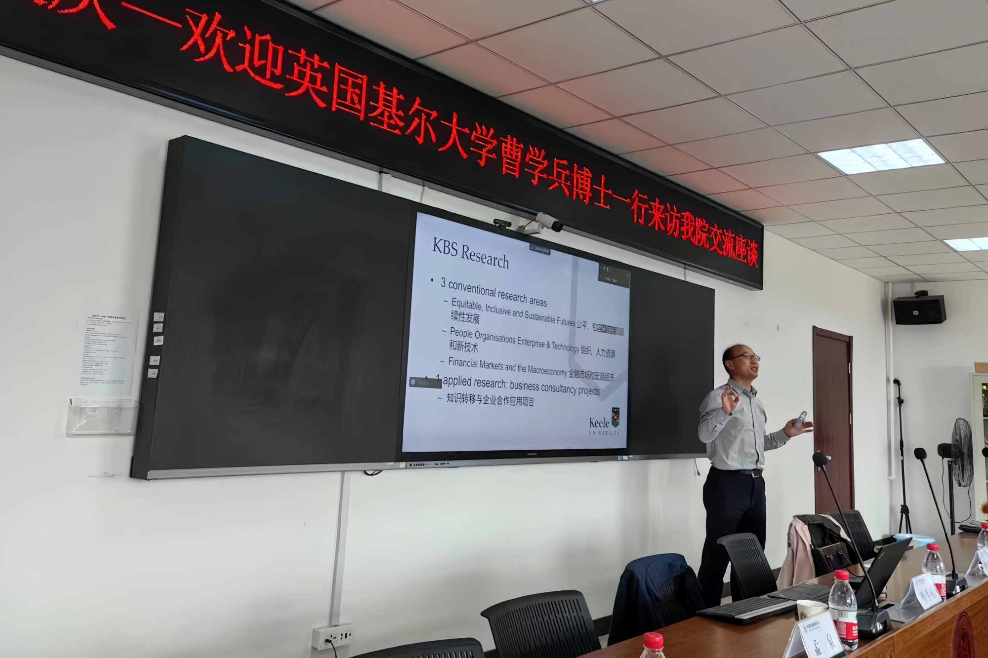 During the visit, the delegation had academic exchanges with the School of Labor Relations and Human Resources. Dr. Cao Xuebing shared the research advantages and main research areas of the Keele Business School. Dr. Li Xiafei and Ms. Lynn Wu explained the specific content and process of Keele University's enrollment of international students, and answered questions raised by the students on site.