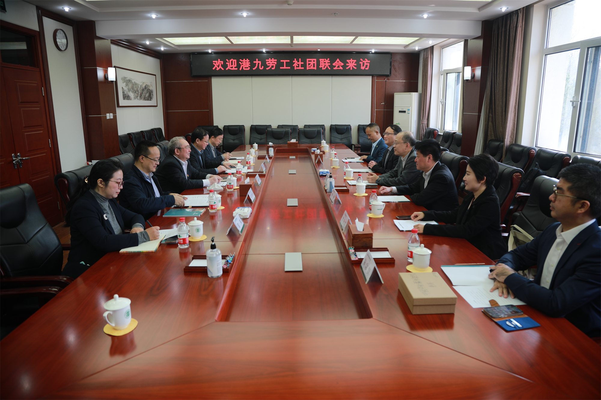 Secretary Liu Xiangbing extended a warm welcome to Secretary-General Chau Siu-chung and his delegation. He introduced the construction of the "labor +" and "trade union +" disciplinary system and the development pattern of "one body and two wings" in our university, and the good achievements in disciplinary construction, talent cultivation, union cadre training, think tank construction, etc. He pointed out that our university is in a leading position in research fields such as labor education, labor relations, theory of the working class and trade unions, and trade union law. Our university has always implemented the principle of "one country, two systems", attached importance to cultivating talents for the labor movement in Hong Kong Special Administrative Region and Macao Special Administrative Region, and hoped to continue close exchanges with the HKFLU to jointly explore more diverse cooperation modes.