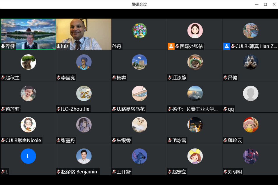 On May 10, the serial international lectures of "2022 Global Flexible Employment Era and Expanding Social Protection" kicked off online, which was organized by the CULR and co-organized by the Labor Relations Branch of the Chinese Association of Human Resource Development. Luis Frota, Project Manager of ILO Beijing Office presented the inaugural lecture titled Status, Challenges, International Comparisons and Approaches to Universal Social Protection Systems. The online lecture was attended by Liu Xiangbing, Secretary of the Party Committee of the CULR, and Fu Deyin, President of the CULR, as well as more than 180 scholars, experts, teachers, and students inside and outside the university.