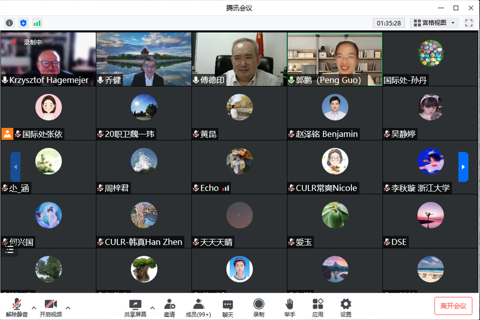 In the concluding remark, President Fu Deyin expressed gratitude to Professor Krzysztof Hagemejer for his impressive presentation. He commented that the presentation gives a full picture of the statistical categorization, standards of categorization, significance, value and issues of the platform-based labor forces in the EU and Poland, and in particular provides a new perspective for legal definition and statistical categorization, which are highly enlightening. As the working style and lifestyle are changed by the digital economy, the existing rules, policies and practices stand to impact more or less, and only by focusing on the fundamental goal of protecting workers' rights and interests can we cope with various complex issues. He briefed the basic situation of the CULR to Professor Krzysztof Hagemejer and invited him to visit our university when the pandemic ends.