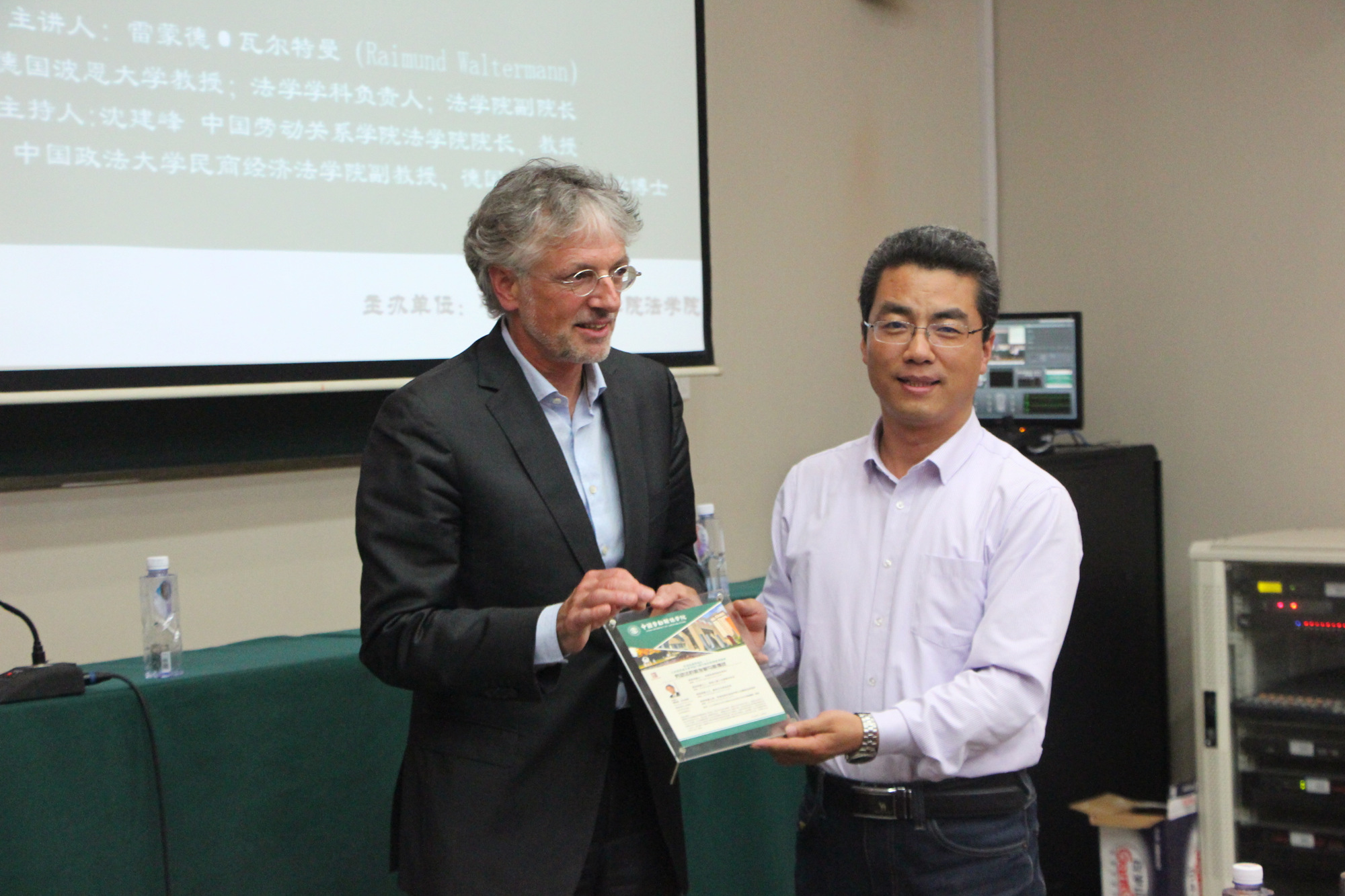 At the end of the lecture, Professor Shen Jianfeng, dean of the China University of Labor Relations Law School expressed his gratitude to Professor Waltermann for his academic exchange during the 70th anniversary celebration of the university and presented him a gift.