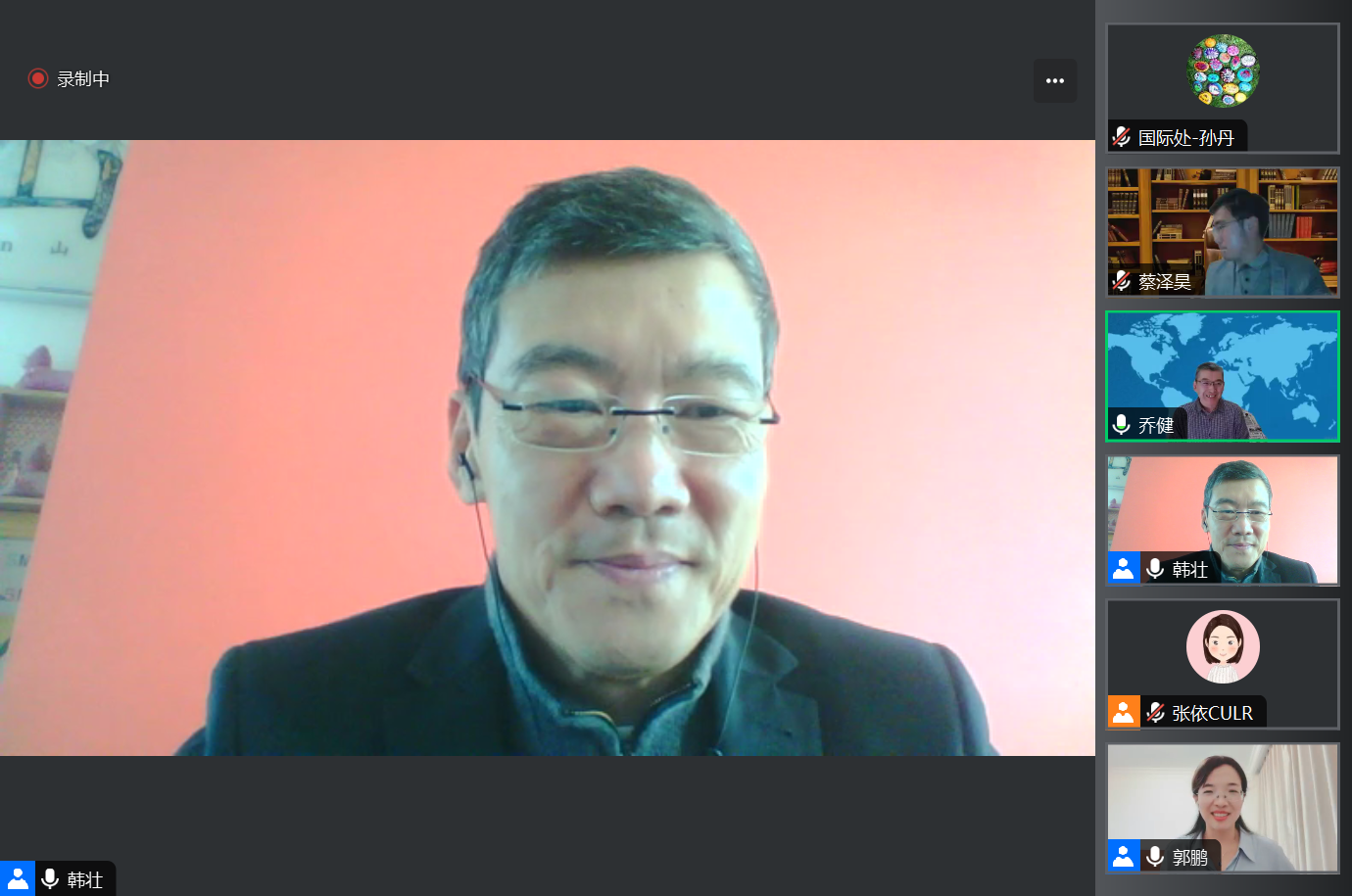 On the evening of November 2, the annual serial lectures on cutting-edge hot topics in the field of labor, organized by the International Office of Cooperation and Exchange of our university and co-organized by the School of Public Policy and Management, were held online. Han Zhuang, a researcher at the Institute of International Law at the University of Poitiers in France, was invited as the keynote speaker and gave a report entitled "French Pension Reform". More than 130 experts, scholars, and students from both inside and outside the university attended the lecture online. The lecture was hosted by Associate Professor Guo Peng from the School of Public Policy and Management.