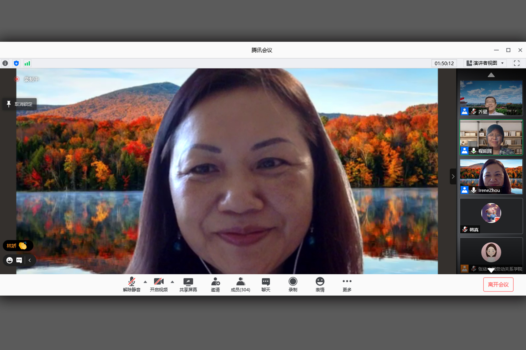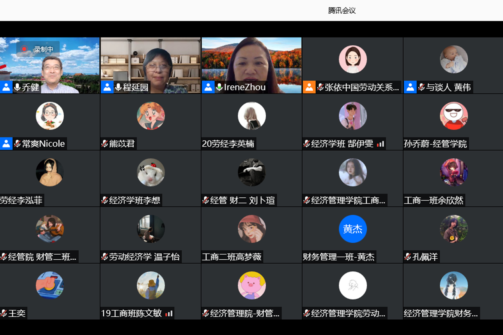 On September 29th, the 9th lecture on “2020 Labor Relations under Global Work Resumption During the Pandemic” was held online by our university and co-organized by the Labor Relations Branch of Human Resources Development of China. Irene Zhou, Deputy Director of International Labor Affairs of the Employment and Social Development Canada (ESDC), was invited to give a lecture on “Characteristics of the Industrial Relations System and Pandemic Responses in Canada”. Over 350 experts, scholars, teachers and students inside and outside the campus attended online. The lecture was hosted by Professor Cheng Yanyuan from the School of Labor and Human Resources of Renmin University of China.