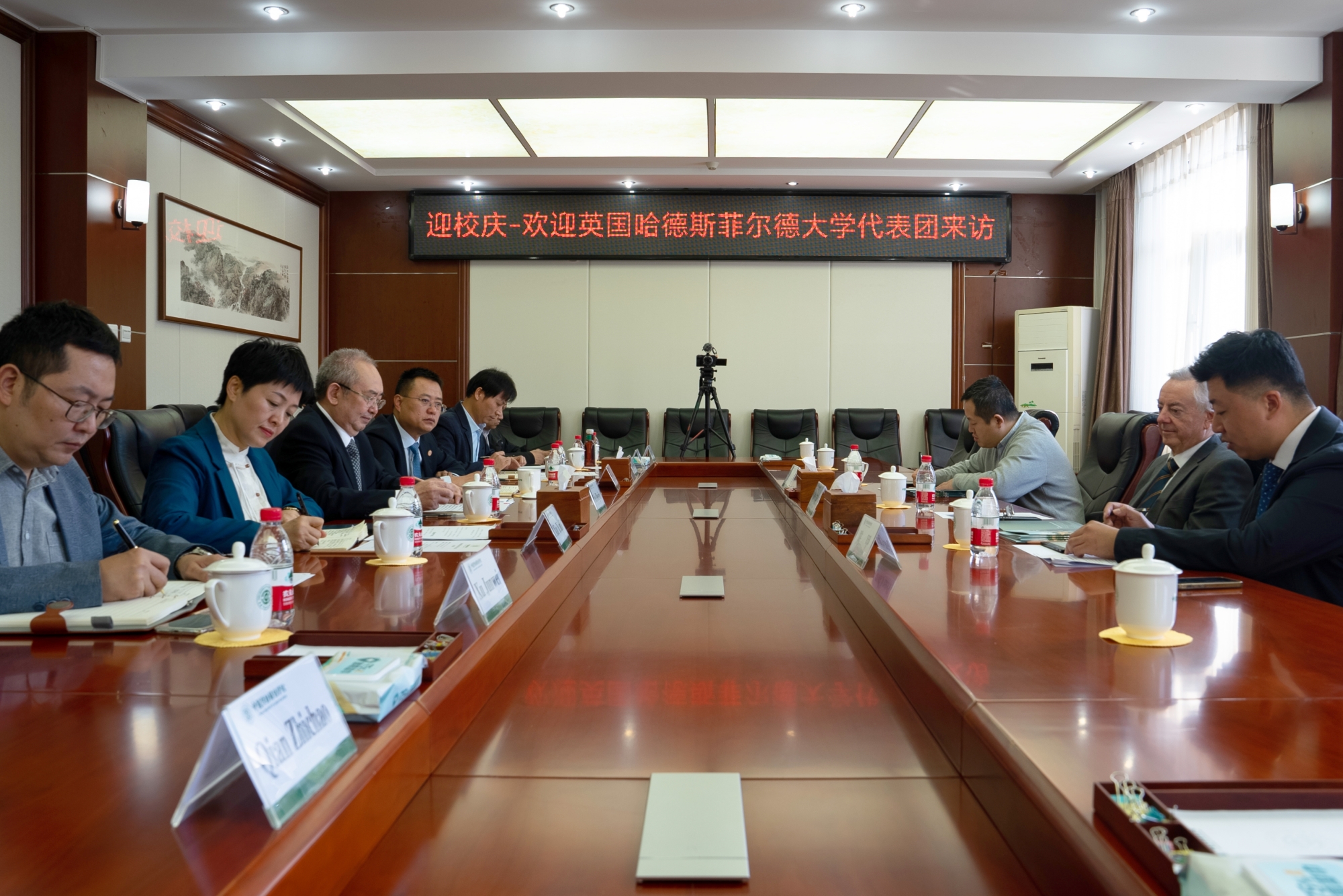 Chancellor Bob Cryan expressed gratitude for the warm reception, and appreciated the suggestion of inviting more British young students to China. He shared the information about HUD and noted that the university has always attached great importance to teaching quality, and improved the learning experience of students by uplifting the faculty's education background and professional qualifications. He hoped that the two universities continue all-round deep cooperation in a number of fields such as cultivation of technological talents, international academic exchange, certification of IET engineers and regional standardization.