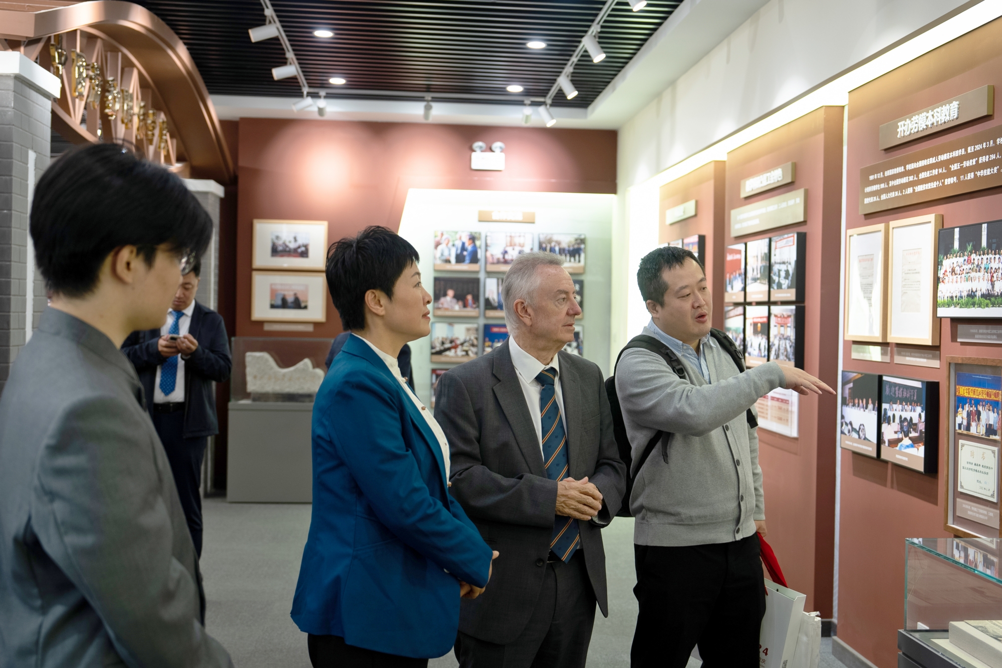 After the meeting, the delegation visited the exhibition of "New Era Comes from Hard Work": CULR studies and implements the spirit of Chinese President Xi Jinping's reply letter, and the university history museum.