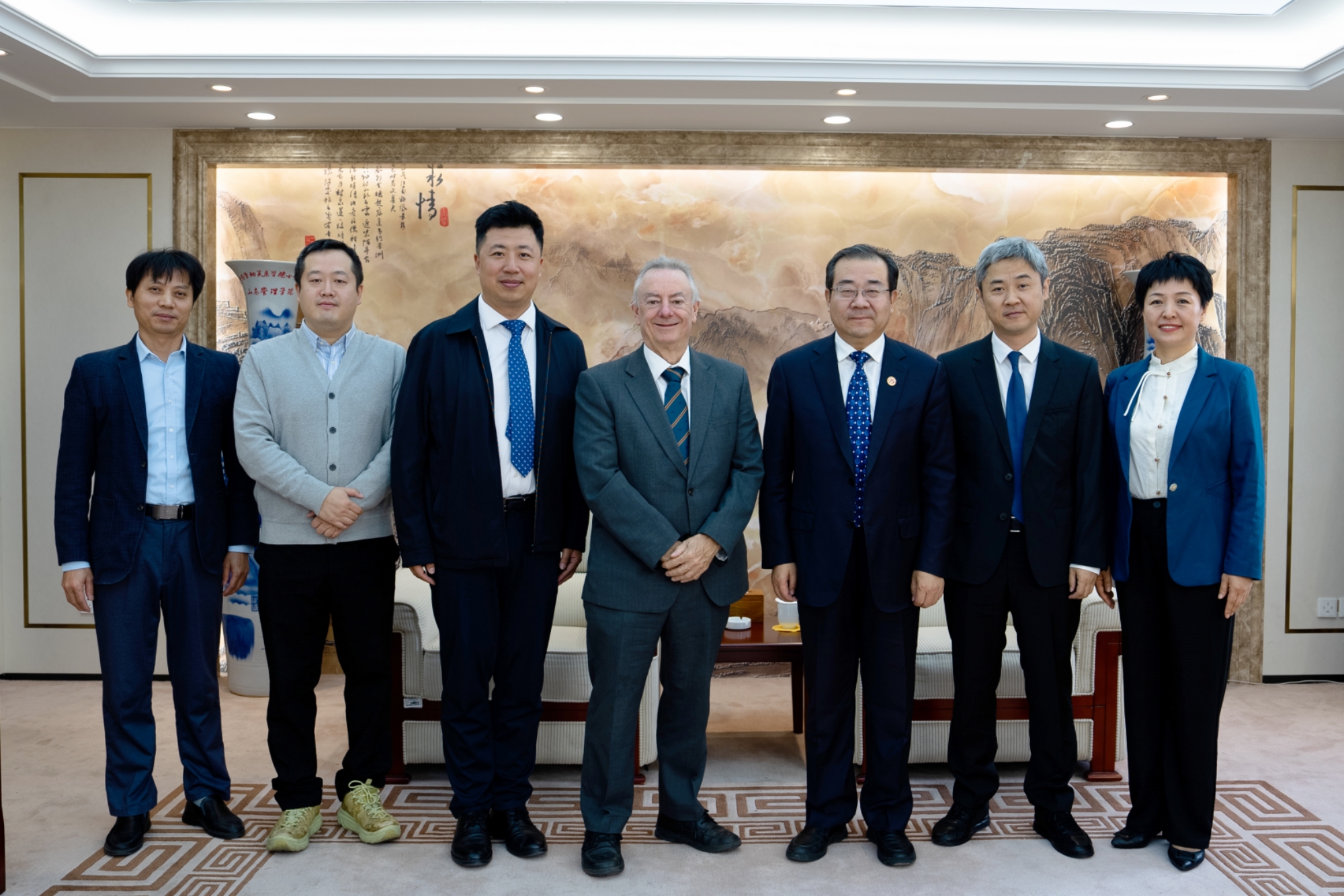 On the morning of October 11, the delegation of University of Huddersfield (HUD) led by Chancellor Bob Cryan visited CULR on the occasion of CULR celebrating the 75th anniversary. The delegation was received by Liu Xiangbing, Secretary of the Party Committee of CULR, and the meeting was attended by Wen Xiaoyi, Member of the Standing Party Committee and Director of the Organization Department, as well as the persons in charge of the Office of International Cooperation and Exchanges and the School of Labor Relations and Human Resources.