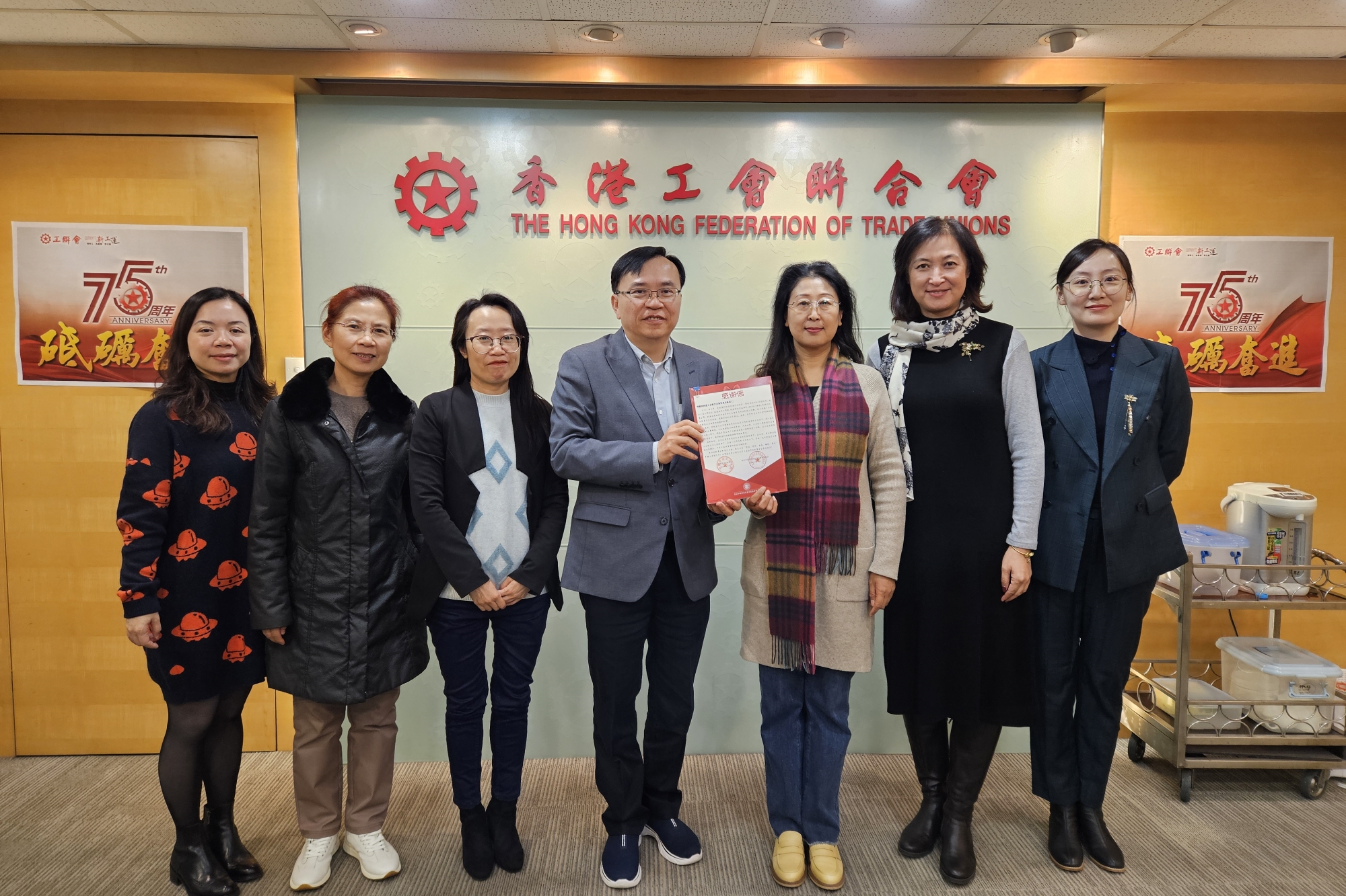On December 21, Director Yan Xiaofei and her delegation visited HKFTU and presented a letter of thanks and a commemorative plaque to HKFTU on behalf of our university, expressing gratitude for the assistance received during the floods in the Beijing-Tianjin-Hebei region. They visited the HKFTU headquarters, regional service and liaison office, and workers' club, gained a detailed understanding of the specific operation of the HKFTU training courses, and expressed their appreciation for HKFTU's determination and ability to fully mobilize various resources to safeguard the rights and interests of workers.