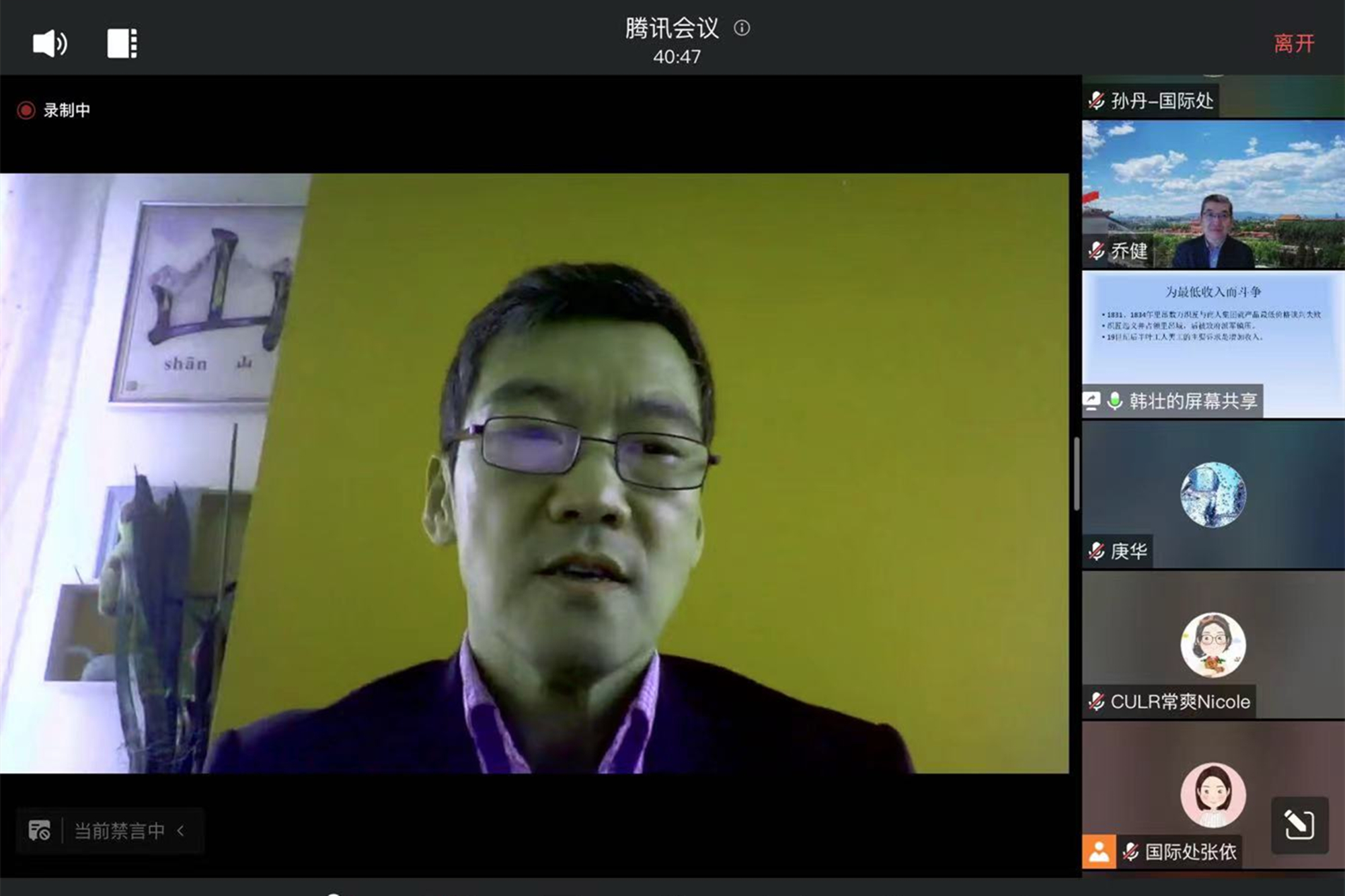 President Fu Deyin of the CULR expressed gratitude to Professor Han Zhuang for his impressive lecture. He said that Han's presentation gives a full picture of the development history of minimum wage, the changes of decisive factors and connotation of minimum wage, the income level of developed countries and the common prosperity concept, the social influence of universal income, etc. which are of enlightening significance and reference value. He also extended an invitation to Dr. Han Zhuang on visiting our university when the global pandemic is over.