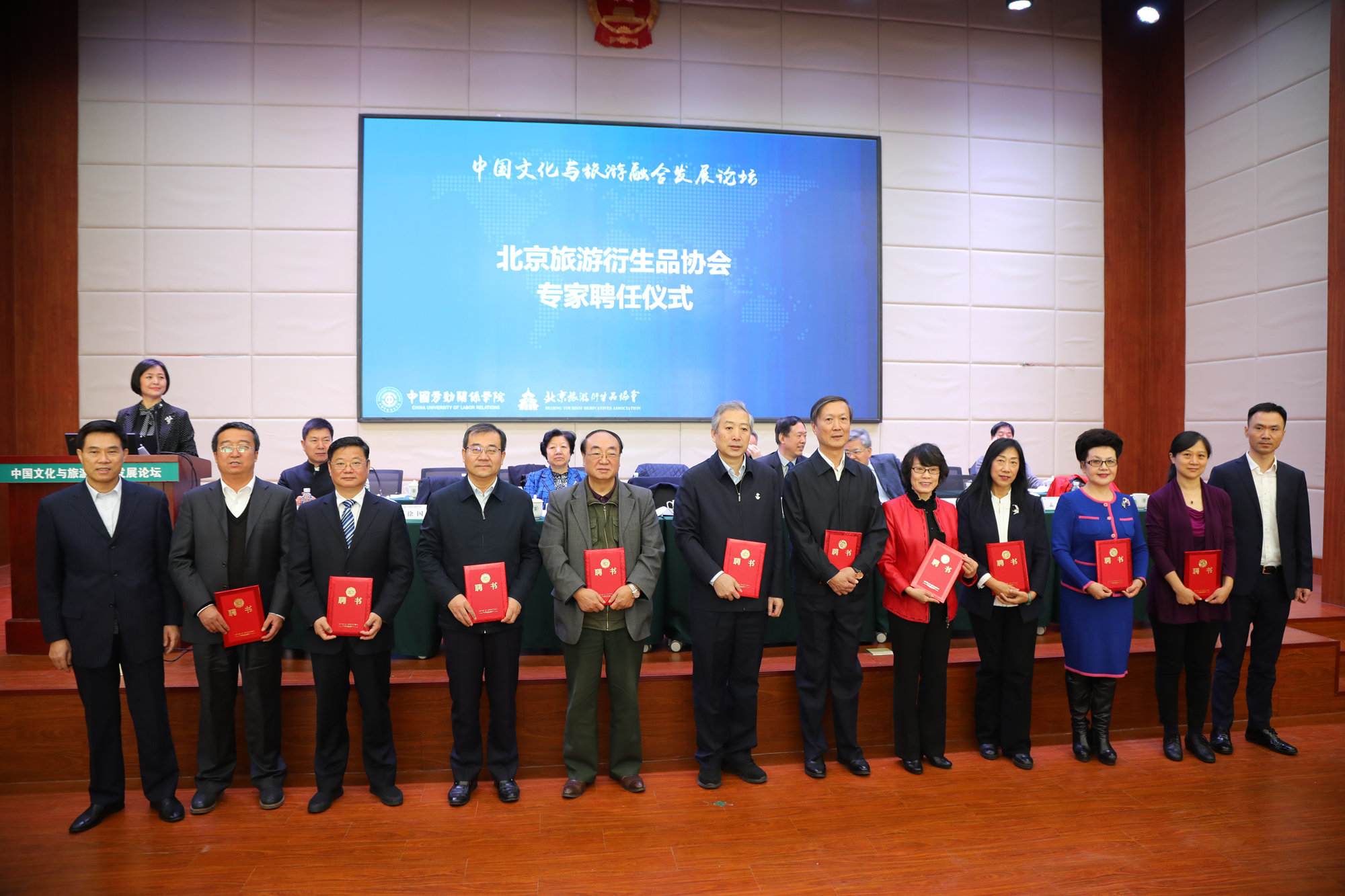 12月7日,由我校和北京旅游衍生品协会联合主办的中国文化与旅游融合发展论坛在致远楼成功举办。第十三届全国人大常委会委员、宪法和法律委员会副主任委员、民盟中央专职副主席徐辉,第十三届全国人大社会建设委员会委员、人民日报社原副总编辑谢国明,北京市人大原副主任、中国侨联副主席李昭玲,中国人民革命军事博物馆原政委孟世强少将,我校党委书记刘向兵、党委常委杨冬梅等出席论坛,来自全国各地30余所高校及旅游酒店业界的120余名代表参加论坛。